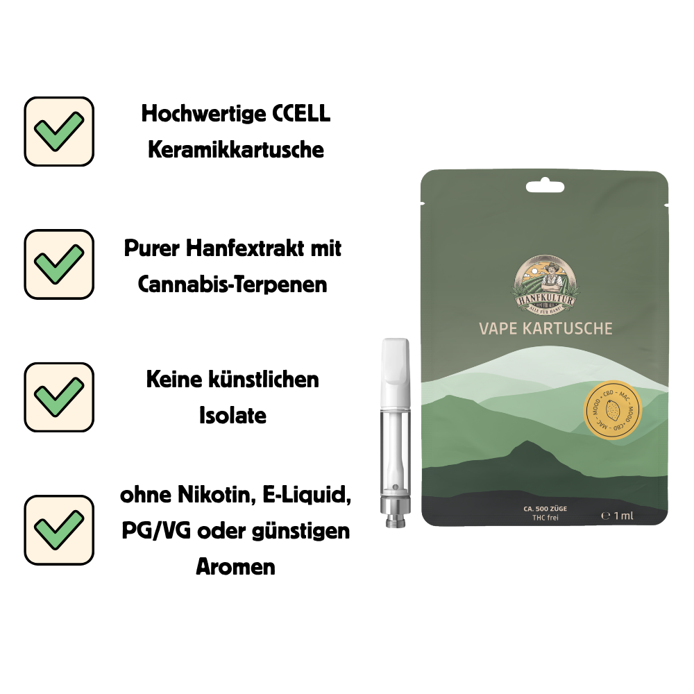Hanfkultur CBD-Vape Kartusche "Mood" – Finde die Leichtigkeit in deinem Alltag!
